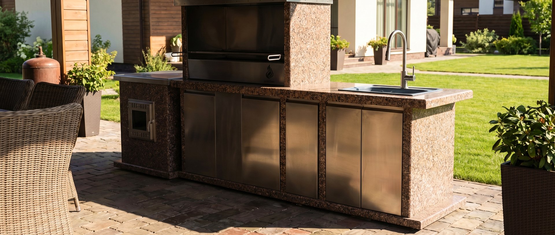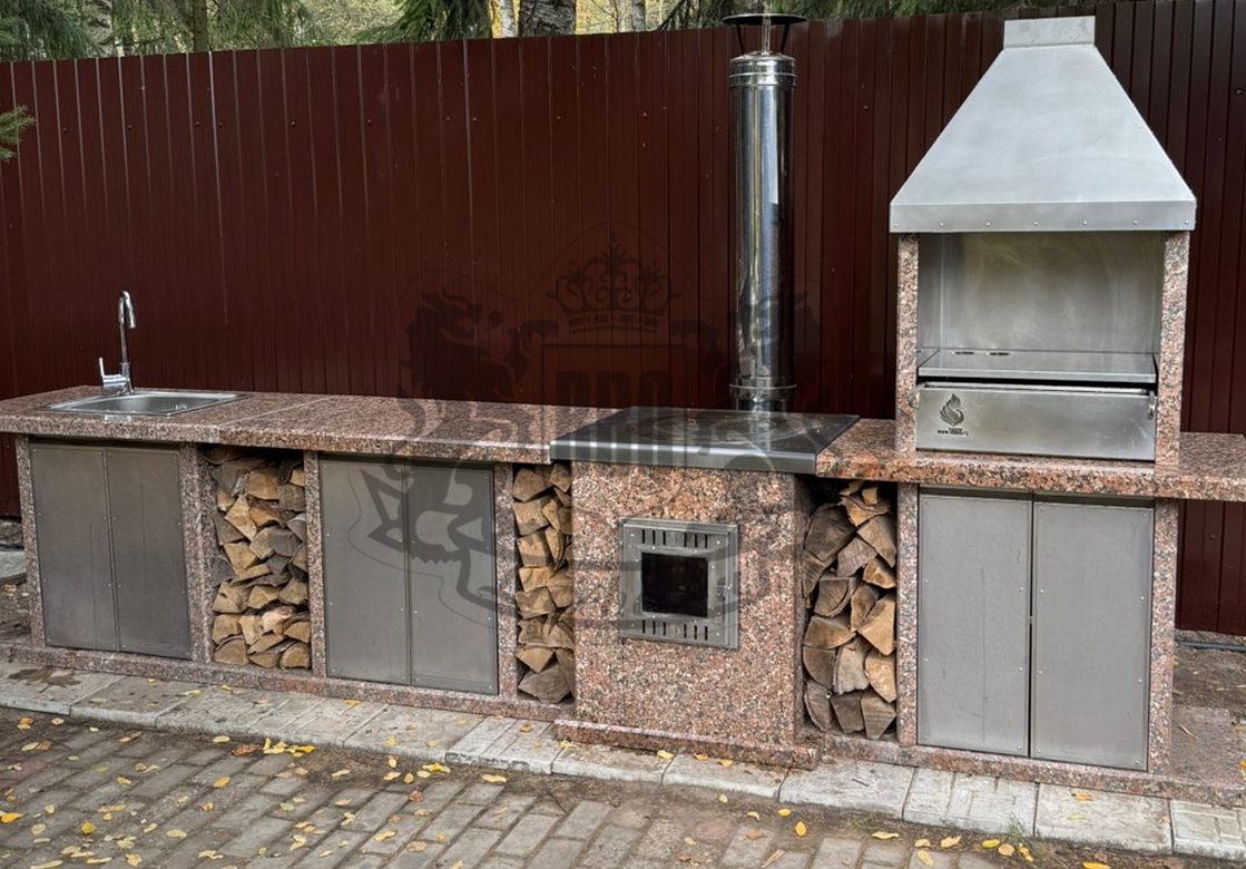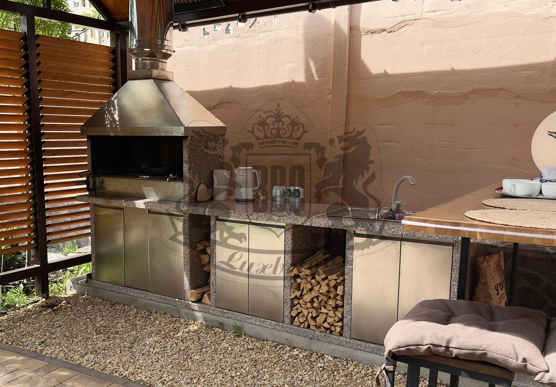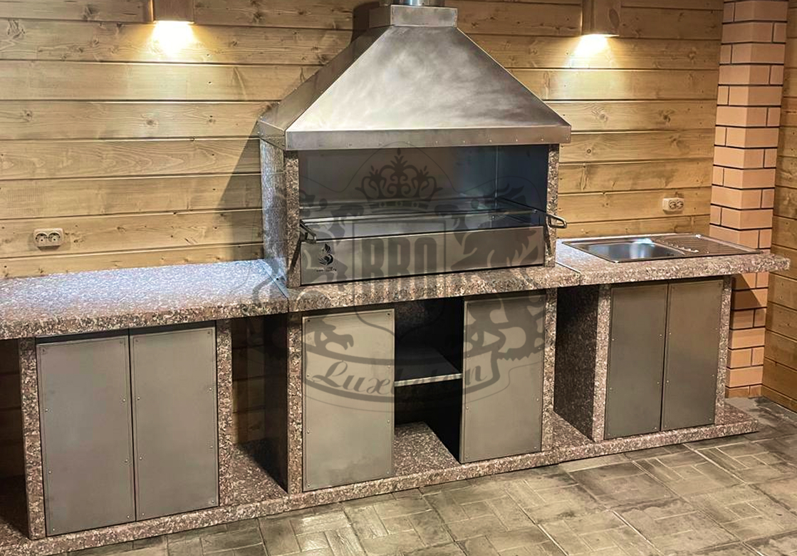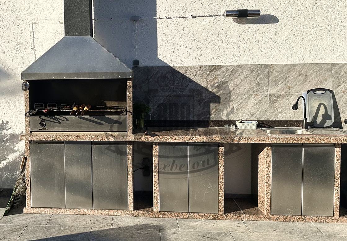 Разделочный стол с мойкой отлично дополнит вашу барбекю зону