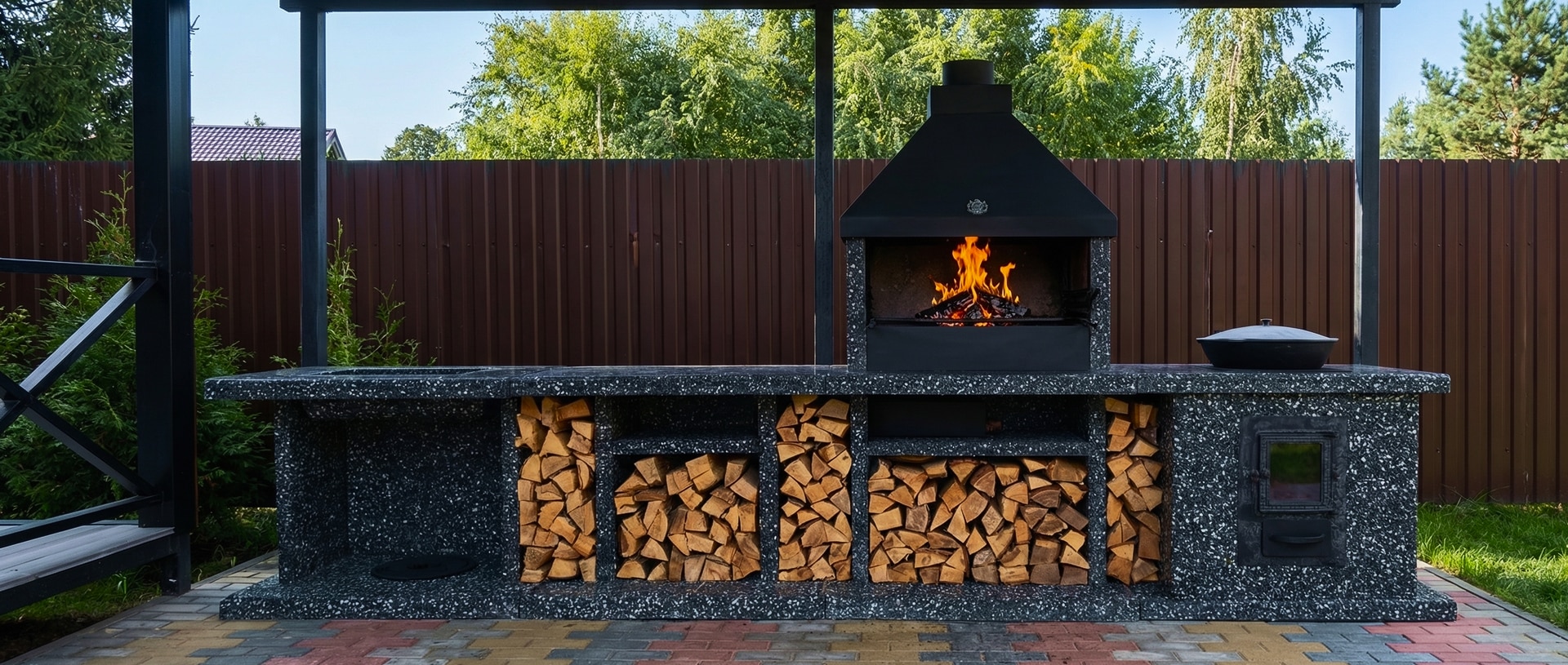 Наши печи-барбекю из натурального камня — это не монолитные изделия, а удобная модульная система. Вы можете выбрать один модуль или собрать полноценную зону для приготовления блюд. Базовый вариант можно дополнить: